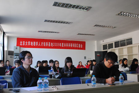 2011年10月16日,杏吧原创 组织了“杏吧原创 地理学人才培养基地”2011年度本科生科研项目评审会。根据科研项目的学科性质,评审分为自然和人文两组,分别在新地学楼3459和3358报告厅举行。经过认真的答辩和讨论,最终有10个课题组共15名学生获得2011年度本科科研项目评审的一、二、三等奖。
