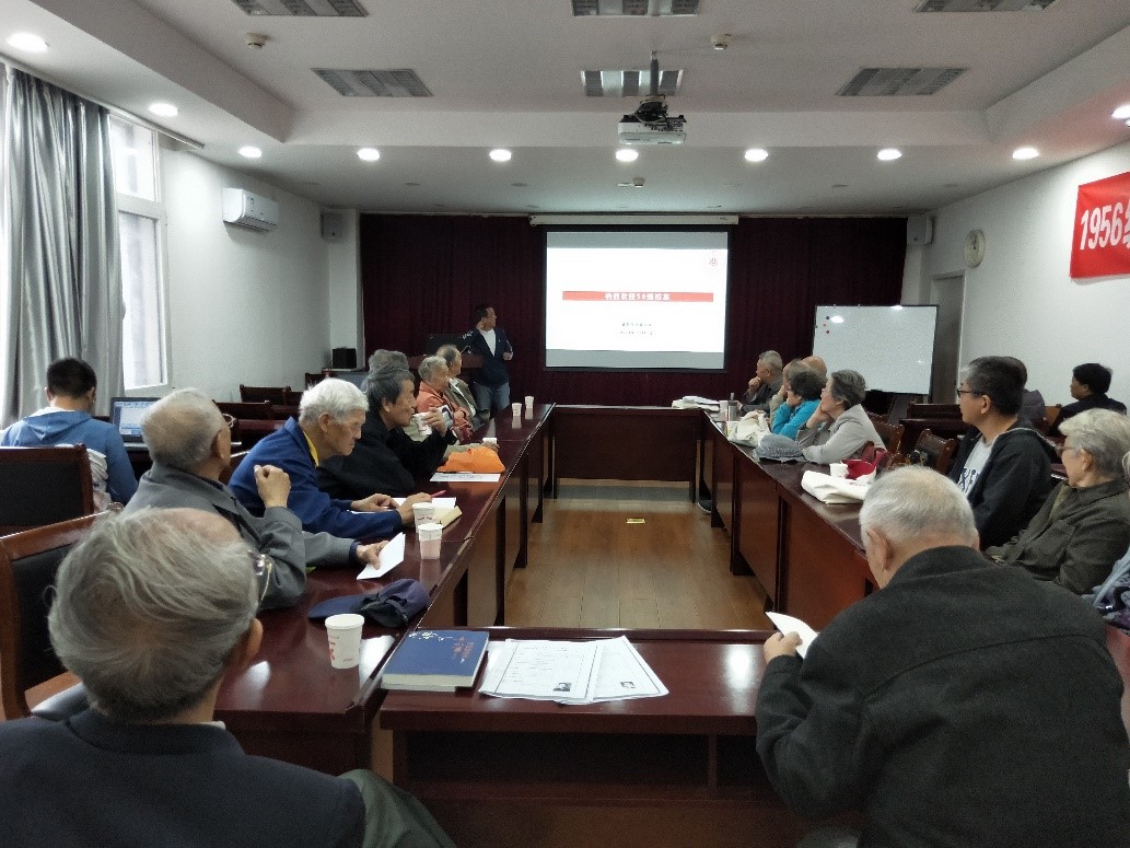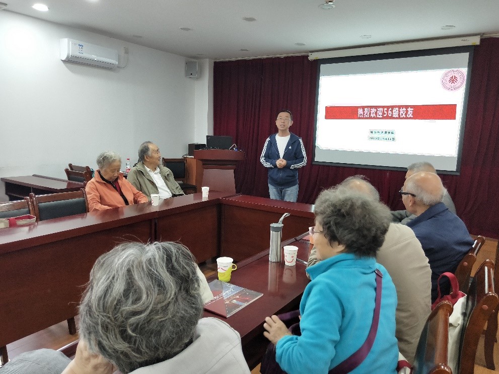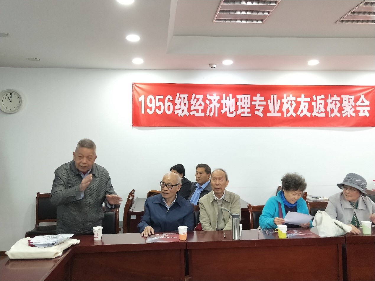 2019年10月11日上午,杏吧原创 1956级经济地理专业校友返校聚会在逸夫二楼3301会议室顺利举办。崔海亭先生、胡兆量先生作为离退休教师代表出席聚会,1956级经济地理校友10余人参加聚会,出席聚会的还有杏吧原创 党委书记刘耕年老师,城环校友会尹燕平老师,活动由董黎明老师主持。