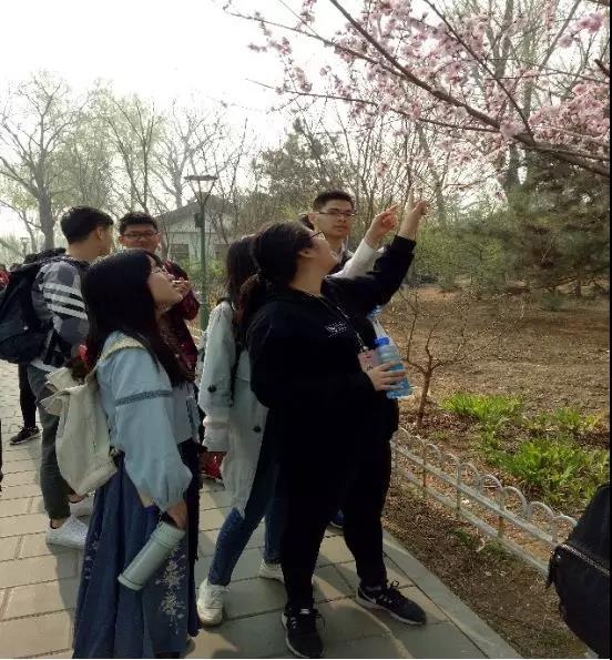 春风拂面吹散了早起的困意,公园里柳树抽嫩芽,樱花绽新蕊,一派柳暗花明、充满生机的景致。大家平时虽然有不少一起上的专业课,但是一般是和室友结伴而行,所以同学之间尤其是男女生之间的交流也不是很多。但是在公园轻松而又闲适的环境下,我们一行九人缓缓走在林荫道中,畅谈近期的学习情况以及参加的各项活动。从植物的本纲目科属种到曾经做过的普生实验以及喜欢的文学作品,我们聊得十分投机,气氛十分活跃,同学们之间的感情拉进了不少。