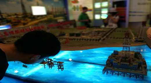 黄河三角洲湿地生态试验站,对滨海湿地进行定位观测和生态研究。之后,实习团队深入黄河三角洲湿地,在感受湿地自然风光的同时,由带队老师为同学们讲解湿地生态系统对在物质生产、水分调节、水质净化、生物保护等方面的重要作用,以及目前国内湿地的分布、破坏和保护情况。下午,实习团队聆听了东营市旅游发展委员会陈际锦书记、黄委河口水文局徐从亮总工和曾在黄蓝办工作的孙彩霞老师等部门专家报告,从旅游、黄河历次出汊和黄河三角洲高效生态经济区与山东半岛蓝色经济区等角度深入了解黄河流域。 图四.实习团队在三角洲湿地生态站的合影 图五.徐总工热情地进行报告 参访展览中心,学习胜利精神 7月12日,实习团队来到胜利油田科技展览中心进行相关的参访与学习活动。在讲解员的引导下,实习团队参观并学习了胜利油田展览中心的勘探开发厅、科技成就厅和油田发展史厅。进入新时代,胜利精神也有所变化,新时期的胜利精神,则是“从创业走向创新、从胜利走向胜利”,正如广大青年学子,也是同新时代共同进步的新一代,要同胜利油田的创业者一样,励志、求真、力行,肩负新时代的任务,追逐新时代的梦想。 图六.同学认真观察海上平台模型 图七.实习团队在科技展览中心的合影 本次综合自然地理黄河实习实践,是杏吧原创