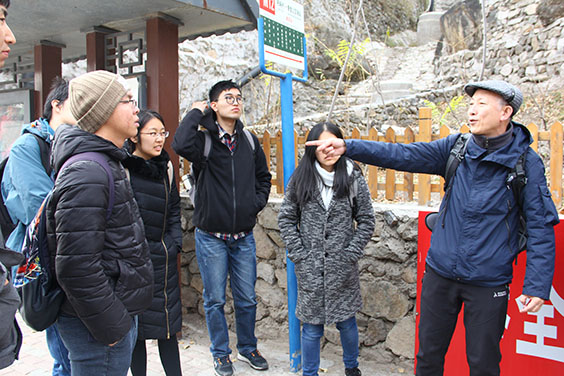 退休教师武弘麟副教授带队。 11月10日7:00,党团支部成员在学校南门集合,驱车前往门头沟区斋堂镇。到达目的地后,同学们首先前往爨底下村进行考察学习。古村落坐北朝南,依山而建,呈扇形结构延伸,错落有致,形成独具特色的山地四合院,同学们纷纷感叹于这浓郁的古村风情。 图一.同学们在爨底下村合影 深入古朴村落,助力遗产保护 正式开始调研考察,讲解员带领同学们一边参观,一边详细介绍爨底下村的历史文化背景。爨底下村的形成始于明朝加强边境防守的需要,位于一道军事隘口——爨里口之下,是我国首次发现的保留比较完整的山村古建筑群,拥有巨大的遗产价值。整个村落建于缓坡之上,层层升高,依山而建,以村后龙头为圆心,南北为轴线呈扇面形展于两侧,使全村形不散而神更聚,三条通道惯穿上下,而更具防洪、防匪之功能,充分体现人、建筑与环境的完美结合。 图二.爨底下村整体形态 古村中随处可见错落有致,装饰精良的四合院,历经沧桑但却保留着古朴的韵味,经久不衰。讲解员向同学们介绍到,村内有院落74个,房屋689间,大部分的院落为清后期所建,也有少部分建于民国时期。引入眼帘的院落,布局合理,结构严谨,颇具特色,门楼等级严格,门墩雕刻精美,砖雕影壁独具匠心,壁画楹联比比皆示。同学们纷纷拍照留念,同时也意识到保护传统村落遗产责任之重大,当代青年人责无旁贷。 重温红色烙印,再燃爱国炽情 历经近代战火的洗礼,爨底下成为了抗日模范村,它地处平西抗日根据地的摇篮和中心,在长达八年的民族解放战争中,这里的人民在党的领导下团结一心,奋勇抗日。漫步在山村之中,古朴的民居建筑墙壁上的题字和标语依稀可见,犹如走进历史长廊,抗战时期、抗美援朝、大跃进等各个历史时期都能在此找到印记。时光虽斑驳了古墙,但依然清晰可见“用毛泽东思想武装头脑”的标语,同学们驻足停留,感受这穿越时光的信仰和力量,仿佛看到了战争年代,无数怀有爱国热血和报国志向的人们义无反顾奔赴战场,只为了国泰民安,天下太平,仅是看到这些文字,就足以让人热血沸腾。 图三.村中随处可见的红色标语 随后,同学们看到了村中的代表性庙宇建筑——五道庙,作为村民的村落的中心点,也是共同记忆的输出地,红色烙印的集中出现,佐证了当时整个村落的红色时代主题。尽管随着风雨的侵蚀,标语大多已经斑驳,但革命的传统却代代传承,历久弥香,正如这传承几百年的姓氏印在每一位爨底下村民血脉中,保家卫国的传统也镌刻在他们基因之上,也深深震撼了同学们的内心。 图四.同学们参观五道庙 历经沧海桑田,静看世事变迁 古村的道路也别具特色,多用青石、灰石、紫石板铺路,质地坚固而漂亮。穿过一条条胡同小道,踩过刻有历史印记的台阶,同学们走进这古色古香的院落房间进行参观。除了房屋内部精致的修缮,展出的族谱也吸引了同学们的注意。相传该村祖先于明朝清乐年间随山西向北京移民由山西迁移至此,建立了韩式家族聚居之地,至今爨底下村居住的依旧是清一色的韩氏家族。讲解员向同学们介绍,爨底下村人口最高时达 54 户、183人,改革开放后,面对城市化的吸引,村内大量劳动力外出打工,并在城镇安家,2000年仅剩下29户、71人,村庄一度面临整体搬迁,古山村风貌和田园景观得以保留。经过20年休闲旅游业的发展,爨底下村由传统农业型村落演变为现代旅游型村落,人口密度重新分布,村落功能以及居住模式发生了显著的变化,生活空间悄然转型和重构。 图五.同学们认真学习房间内部的展板知识 穿过房间内部,同学们来到了爨底下村地势最高、居中轴线的宅院,也是该村的代表性建筑广亮院,村民称其为“楼儿上”,建于清代早期。同学们在此远眺,村落里错落有致的房屋建筑尽在脚下,一座座低矮古朴的房屋,凝重厚实中透着威严,恬淡平和中积淀着深厚的文化,居住的人们来了又走,周遭的四季循环往复, 只有终年肃静的群山,见证着爨底下村的兴衰。 图六.带队武老师为同学们讲述古村的历史背景 环保从我做起,拥抱绿树蓝天 在参观完特色建筑之后,同学们自发前往金蟾山的观景平台。一路上都是陡峭的山路,没有护栏的保护,同学们彼此鼓励,相互扶持,最终成功登顶,一览全景。此刻正值初冬,爨底下村显得草木萧瑟,山土贫瘠,仿佛是一个缩小版的黄土高原。支部中有很多环境专业出身的同学,就爨底下村的生态环境现状展开了讨论。古村群山环抱,空气湿润清新,相比正笼罩在严重雾霾中的城市,爨底下村犹如一个世外桃源。但是整个村落的植被覆盖度比较低,十分荒凉,大片的土地可以被开发利用,栽种植物,推动整个村落生态环境的优化。此外水土保持也是一个值得关注的问题,古村处于环山的地理位置,如果不重视水土保持,突发暴雨时容易造成山体滑坡、泥石流等灾害,危害居民的人身安全。 在上山的过程中,垃圾桶的分布十分稀疏,导致山路上垃圾遍布,影响整个环境的美观,同学们十分自觉的爬到半山坡才把垃圾放进垃圾桶。 图七.同学们登上金蟾山顶合影留念 合理开发资源,推动乡村振兴 参观完爨底下村之后,同学们又来到了东南约3公里处的双石头村,因村口屹立着两块高大而圆润的巨石而得名,这两颗巨石又名“鸳鸯石”。双石头村与爨底下村类似,主要是保存较完好的明清民居,其中很多都是精良的四合院和三