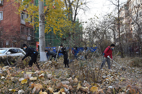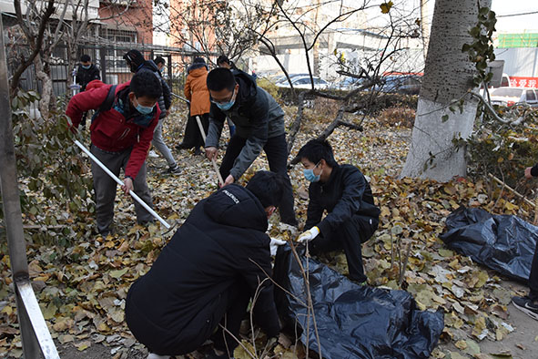 西门准时集合,前往畅春园社区。经过居委会工作人员的耐心指导后,发放手套、口罩、耙子、扫帚,同学们不怕苦不怕累,开始了落叶清扫。面对堆积如山的落叶,同学们分工合作,有人撑起塑料袋,有人拿起工具打落挂在树上的落叶,有人徒手将落叶捡起放到袋子中。虽然扬起灰尘,天气寒冷,但是同学们吃苦耐劳并乐在其中,老师们也参与到清扫落叶的活动中来,经过大家的共同努力,落叶慢慢变得稀少。最终街道整洁如初。 图二.清扫落叶活动进行中 附近的居民见到此情景,纷纷露出欣慰的笑容,称赞我们是热心为人民服务的社会主义好青年。同学们在活动结束后都积极分享自己的心得体会。夜幕降临,畅春园也被清扫得干干净净,同学们在欢声笑语中回到校园,留下难忘的回忆。 图三.同学们分工协作清扫落叶 经过这次清扫活动,大家都深刻感受到维持环境的不易,先辈们为我们创造现在幸福生活的不易,我们只是在冷风中进行了三个小时的落叶清扫活动就已经累得汗流浃背,革命先辈们风里来雨里去,不怕苦不怕累地坚持斗争,在那段峥嵘岁月中奋勇向前、自力更生,才为我们今天的社会主义现代化国家的建立奠定了坚实基础。而我们更应该传承这种大无畏和吃苦耐劳的精神,这是中华民族精神瑰宝,是无产阶级取得胜利的关键与核心,是社会主义建设中新时代青年必不可少的精神食粮,更是我们成为合格的社会主义接班人的首要前提。 图四.同学们用手捡拾落叶 同学们更是感受到了热心服务、一心为民的精神力量。在习近平主席的领导下,我们新一代青年更应该本着为人民服务的精神,将党的精神贯彻落实下去,为构建和谐社会贡献自己的一份力量。人们都说“被需要是一种幸福”。这感觉我们是在真正的做志愿服务之后才获得和理解。把志愿服务当作自己的生活内容和生活方式,时时刻刻去帮助需要帮助的人,做奉献爱心的事,这就是当一名志愿者的真谛。我们应该更加努力的去服务社会,为更多的人送去温暖,让更多的人看到希望。 撰稿:朱晗 供图:彭若男、张孝琰 审核:关汉岳