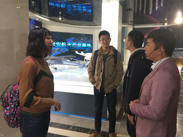 12级城市规划专业毕业生,现任华夏幸福固安城市规划方面的负责人。 图3 在规划馆听取韩晓飞学姐讲解 随后,在韩晓飞学姐的带领下,同学们参观了卫星导航产业园和肽谷生物医药产业园,在展厅听取了讲解员介绍两个园区的基本概况与产业发展情况。在路途中韩学姐又给同学们普及了固安产业新城的规划理念——要建立一座有完整配套宜居宜业的城市、做理想中的城市,就要适当考虑为城市的未来预留发展空间。同时,同学们也了解到,华夏幸福是中国唯一一家有产业发展团队的企业。 图4 同学们在固安航天产业园交流 最后,同学们参观了华夏幸福最近布局的孔雀城·大湖地产项目,该项目在规划之初就在城市配套方面十分注重。售楼处的工作人员带领大家参观了大湖内合院的样板间。地上两层地下两层外加巨型小花园的合院,内部精巧的设计、豪华的装修都令大家大开眼界,其中运用的很多思路对同样学习过设计课程的大家也有所启发。 图5 同学们在大湖售楼处听取讲解 在轻松愉快的氛围下,本次华夏幸福企业参访活动也就告一段落。伴着落日的余晖,大家乘车返回了学校。通过本次活动,同学们对华夏幸福有了进一步的了解,在拓展视野的同时,更为自身未来就业择业打下了基础,每个人都收获满满,不虚此行。 图6 合影 文:张燕华 陈雪琦 张馨元