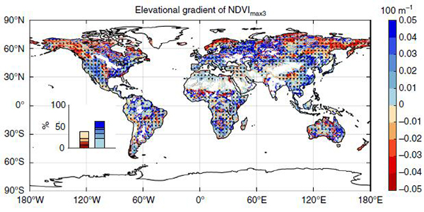 植被生长特征具有明显的海拔梯度格局,而温度沿海拔梯度的差异被认为是其主要原因。有研究表明,在气候变暖背景下,海拔愈高,升温愈快,导致温度海拔梯度差异减小。这是否会进而导致不同海拔植被生长特征差异减小呢?欧洲科学家证实,过去几十年间,阿尔卑斯山地区植物春季物候沿海拔梯度的差异呈减少趋势。但是,这一现象在其他地区是否普遍存在仍不明确。 杏吧原创