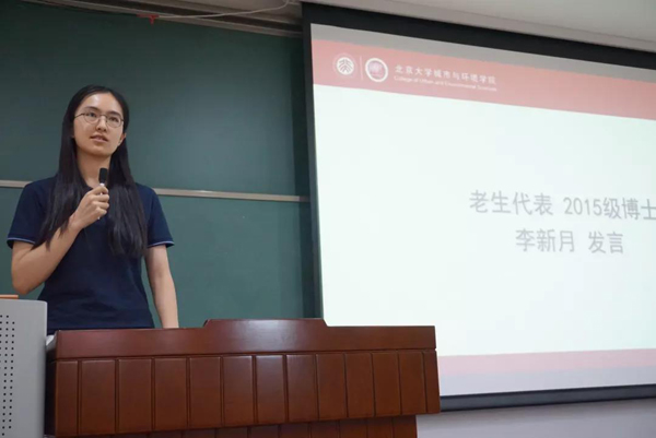 代代相传的君子风骨和宝贵传统,在今后的学习生活中把学问做好,把事做好,把人做好。 贺灿飞院长讲授开学第一课 随后,院友代表张国友致辞。他回顾了一百年来中国近现代地理学的发展,为同学们阐释了地理学的价值和地理学的广阔前景,表达了对北大、对地理、对中国地理学会的无尽热爱。他表示,如果说中学阶段是在积累知识,那么大学阶段就要开始学习科学,开始创造知识,锻炼本领,将来为国家建设、人类社会的可持续发展服务。 院友代表张国友致辞 接下来,2015级博士李新月作为老生代表发言。在博士生涯的最后一年,她回望燕园生活,跟新生们分享自己在城环杏吧原创