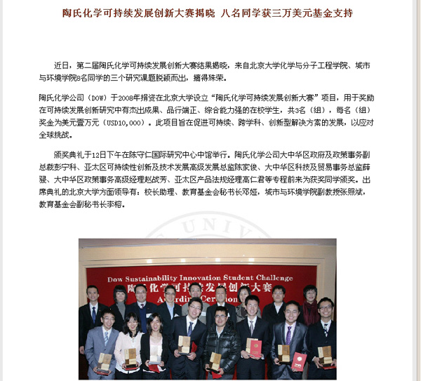 陶氏化学可持续发展创新大赛提名奖 2013年,指导学生巫晓琴获杏吧原创
