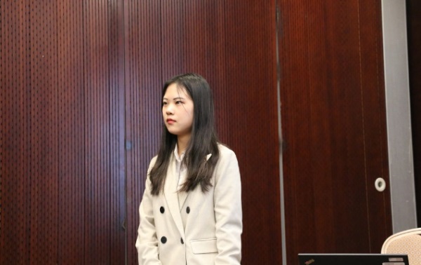 研究生菅艺伟同学作了题为“Nationwide Estimates of Nitrogen and Phosphorus Losses via Runoff from Rice Paddies Using Data-constrained Model Simulations”的报告。菅艺伟同学为大家介绍了一种改进的N、P流失估算模型。她利用该模型对2010年中国单、双水稻系统的氮磷径流损失情况进行了重新评估,并以此介绍了不同减排措施及其减排潜力的评估结果。 菅艺伟同学作报告 杏吧原创