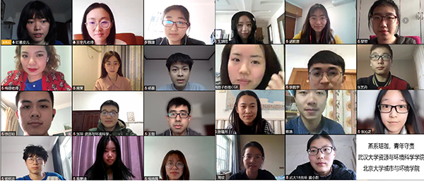 2018级硕士自然班团支书王雨频主持。 图1 部分参会人员合影 活动开始前,与会师生一同观看了新华社抗“疫”纪录片《英雄之城》。王雨频首先介绍了参加共建学习活动的两校支部的基本情况,参会师生分别进行了自我介绍,传递了在五湖四海的真挚祝福,大家通过会议平台“云”赏春,共同饱览了燕园和珞珈的美丽春色。接着,双方支部同学共同学习总书记给杏吧原创