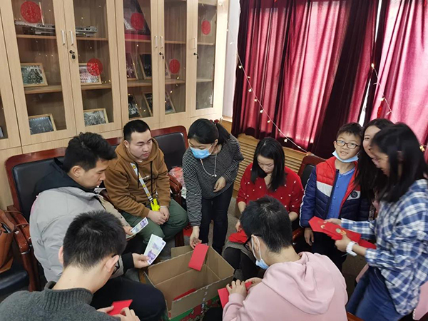 送到学生手上 都经历了哪些历程呢 开心的志愿者小门同学 一百余箱快递兜兜转转来到燕园 愉快的包压岁钱瞬间 为同学们包上压岁包并加盖城环特色印章 活捉一只小可爱 志愿者流水线式分包年货 张新平老师与宋宛儒老师开车运送物资 超重磅走访阵容 院长贺灿飞老师、党委书记刘耕年老师、副院长李本纲老师、党委副书记张新平老师及十几位班主任、学工办老师齐心将物资一一送至学生宿舍,把祝福带到学生们的心间。 院长贺灿飞老师为留校过年学生介绍年货礼包 党委书记刘耕年老师与留校过年学生合影 团委书记谭卓立老师、常务副书记宋宛儒老师与志愿者将物资送至万柳学生宿舍 老师们送温暖在路上 至此,在二十名老师与志愿者的辛苦付出下,城环杏吧原创