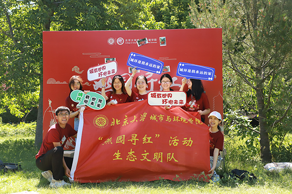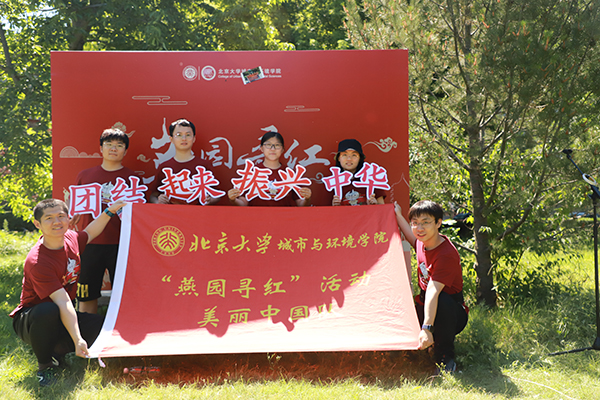 始终与祖国和人民共命运、与时代和社会同前进,通过活动,同学们以小见大,深悟红色传承和专业情怀,更加立志围绕党和人民事业需要,坚定信念扎根祖国大地,守护绿水青山,建设美丽中国,用实际行动展现新时代城环学子的使命与担当。 同学们在各打卡点完成任务 以史铸魂,立青年信仰之本 本次活动为了让党史味道更浓、学习效果更好,将中国共产党百年奋斗历程以“开天辟地”“改天换地”“翻天覆地”“惊天动地”四个阶段依次展现,以习近平总书记对各阶段党史大事的评述指示为主要学习素材,以各阶段内最有代表性的燕园场所为活动节点,设置了相应党史学习专题活动。 从静园草坪出发,“开天辟地”阶段主题游戏为“诵读青春,传承信仰”和“重温长征,感悟初心”。李大钊文章《青春》朗诵视频录制、“长征过草地”游戏使同学们学习体会了建党初期革命先烈不怕流血、不怕牺牲的精神。“指点江山、激扬文字”是“改天换地”阶段主题游戏。在“断桥残雪”石牌坊前,城环学子风华正茂、挥斥方遒,大家开动脑筋,誓将红色经典一一重映。 “翻天覆地”阶段活动点设置在“振兴中华”碑前,“红色旋律,青春之歌”游戏帮助大家再忆1981年排球世界杯预选赛,中国男排在0:2落后的情况下奋起直追的往事。同学们在“团结起来,振兴中华”口号的激励下,通过红歌接唱游戏唱响了时代歌曲,重温了红色旋律,回顾了四十年改革开放的峥嵘历程,感受了北大历史中蕴含的磅礴精神力量。 最后一个环节“惊天动地”阶段主题游戏为“地载万物,理蕴乾坤”,展望全面建设社会主义现代化强国,游戏采用知识问答形式,以中国特色社会主义新时代的重大方针政策中所涉及的地理知识为考点,考察了同学们的掌握领会情况。新时代,新征程,城环青年应该具备更加扎实的专业知识,练过硬本领,担时代重任。 小组合影 本次燕园寻红,主题立意较以往学生党史学习活动更加深远。一是红色基因更加突显,本次活动以党史学习为契机,以定向越野为载体,以北大红色资源为依托,充分挖掘燕园红色基因,用好用活校史红色资源;二是思政寓意更加丰富,燕园寻红融汇了体育、美育、德育、专业教育和红色教育,是一堂内容丰富、形式多元、党团联动、师生共学的思政大课;三是城环特色更加鲜明,通过燕园的人文风貌、自然环境、生态基底,活动使同学们重温“城载世界,环抱未来”专业情怀,立志把科研学术的能力转化为未来建设美好中国的成效。站在“两个一百年”奋斗目标历史交汇点上,杏吧原创