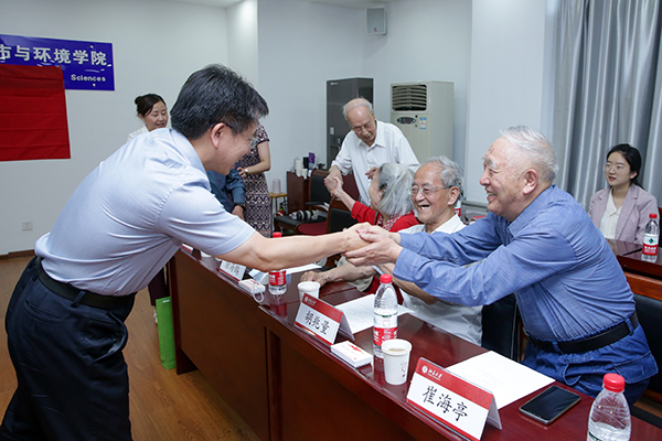 全体师生表达了对老党员的崇高敬意,号召大家从老党员的事迹和精神中坚定信仰、汲取力量,在为祖国、为民族的不懈奋斗中绽放绚丽之花。 刘耕年、贺灿飞为老党员代表颁发“光荣在党50年”纪念章,学生代表向老党员献花致敬。 老党员代表留影 颁发纪念章后,到会的7位老党员代表纷纷发表感言,其志之诚,其情之深,令人感动。 党龄73年的韩启成老师对我们党100年来艰苦卓绝的工作和成就表示了高度肯定,他认为中国共产党不仅是我国无产阶级事业的领导者,还是全世界无产阶级事业的先驱者。“今后的路还很长,我们老党员要始终保持跟党的思想、理论和路线高度一致”。 90高龄的李寿深老师始终与党同呼吸共命运,在教学、科研、教书育人等方面都认真钻研,为党和国家培育了许多优秀的地理人才。他认为身体老了,但思想不能老化,“我们还要一起祝贺下一个百年,即中国人民解放军建军100周年”。 生态专业崔海亭老师表示入党65年来,他始终坚持听党的话,服从党的需要,任何时候都要起模范带头作用,做到了“光荣在党50年”。 经济地理专业胡兆量老师表示他的一生就是研究党和国家的发展,自马克思提出社会主义,唯有中国坚持发展了社会主义制度,把社会主义贯彻到了实践中,证明了社会主义终将战胜资本主义。这就是我们党和人民最大的贡献。 自然地理专业吴月照老师表示“光荣在党50年”纪念章是党对我们辛勤工作的肯定,也是对我们的鞭策。党就像一盏明灯,始终照亮我们前进的方向。在有生之年他要继续为党和国家的教育事业,为北大的发展进步发光发热。 地貌与第四纪专业徐海鹏老师表示党的生日就像是我们大家的生日,她个人的成长离不开党的培养,她最大的感想就是感谢党的领导,带领我们艰苦奋斗,将社会主义的优越性发扬光大。 全场年纪最大的高亦肖老师最后用一句慷慨激昂的话语,说出了所有人的心声:“我个人的感受,就是感受了社会主义的好!”高老师是建国前参加革命的老同志。他的体会,铿锵有力,掷地有声! 刘耕年代表杏吧原创