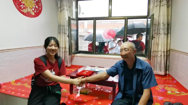 师生来到村民白高山家中同白高山一家亲切交谈,询问村民的生活情况。刘耕年同白高山老先生热情握手,共话脱贫成功后人民生活的美好蓝图。 刘耕年同白高山亲切交谈 同学们与白高山热情握手交流 随后,云州区政府领导和杏吧原创