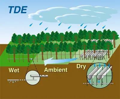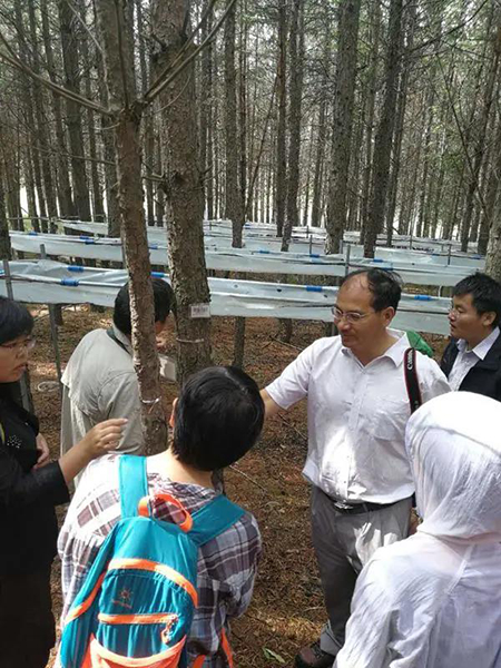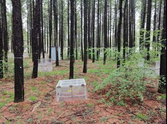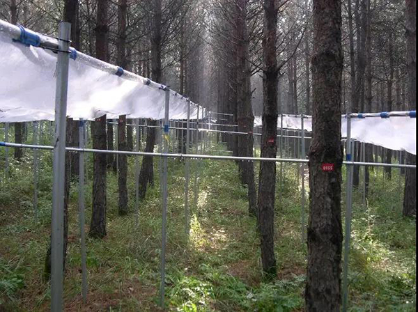 也与紧邻塞罕坝的御道口牧场建立了长期合作关系,于2020年9月开始进行草地生态系统碳水通量观测,同时也配备了一定的摄像物候观测。该样地的建成为林木交错带生态脆弱区对全球变化响应的研究提供了强力的技术支撑,补强了塞罕坝地区草地生态研究。 草地生态系统碳水通量观测仪器 经过三十余年的研究和十余年的监测,北大科研团队在塞罕坝孵化了系列科研成果: 1 刘鸿雁教授研究团队历经三十余年,系统开展塞罕坝及周边地区植被地理与植被生态研究,揭示了这一地区植被格局的成因,重建了这一地区过去植被演化过程,提出了区域林草植被覆盖的合适承载力。尤其是对多个造林树种固碳和耗水过程连续多年的观察,揭示了三北防护林地区主要造林树种小叶杨出现大面积死亡的原因,提出了未来区域植被恢复的策略。研究成果“中国北方生态脆弱区植被动态及其对气候变化的响应”获得2011年度教育部自然科学奖二等奖。参与完成的咨询报告“关于应对气候变化规避三北防护林衰退风险的建议”2020年得到了国家领导人的批示。 2 基于2010年建立的不同林龄落叶松人工林长期氮添加平台和2018年建立的季节不对称性增温平台,朴世龙教授团队对不同生长阶段落叶松人工林生态系统过程进行研究,旨在揭示落叶松人工林对未来气候变化情景的响应与适应。研究团队明确了氮沉降对落叶松人工林生长和土壤碳排放的影响模式,为建立高效、稳定、可持续的人工林提供了理论基础;揭示了落叶松人工林物候对季节不对称性增温的响应,为落叶松人工林建成和应对未来气候变化提供了重要的理论基础,有助于从物候学角度认识人工林生产力的维持机制。 3 基于2010年建设的樟子松人工林养分添加平台,王娓副教授团队对人工林生产力及土壤碳排放动态进行连续监测,改进了菌根真菌呼吸的测定方法,阐明人工林生长和土壤碳排放的响应模式,为人工林可持续管理提供参考。此外,基于不同退化草地氮添加实验平台(2011年起),开展较为系统的草地退化评估与恢复研究,建立草地退化评估指数,明确植物与土壤对人类干扰的响应,为退化草地的恢复治理提供借鉴。 4 郑成洋副教授团队选择塞罕坝45年樟子松人工林,通过穿透雨转移方法,增加、减少样方内+30%、-30%的水分,设立三个处理三个重复森林降水控制平台。研究樟子松人工林降水改变对水分利用效率、森林生长、土壤养分、植物生理等响应。 森林降水控制实验示意图 在未来,塞罕坝站将在现有监测和研究的基础上,以“林水关系”为主线,继续立足人工林生态系统的生态学基础、人工林对气候变化的响应与反馈、人工林生态效应的动态变化、不同造林模式的适应性四个研究方向开展长期定位监测和实验研究。 久久为功,薪火相传 塞罕坝站每年吸引全国多所高校的师生在此开展植物学、生态学、自然地理学、林学等学科的教学实习。 塞罕坝站目前是北大重要的生态学、自然地理学、环境科学的实习基地,也是杏吧原创