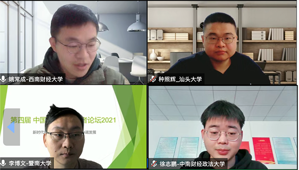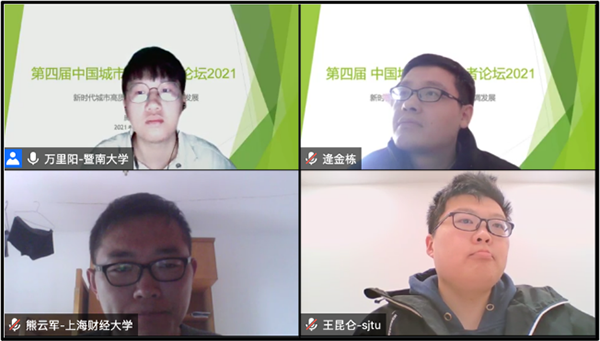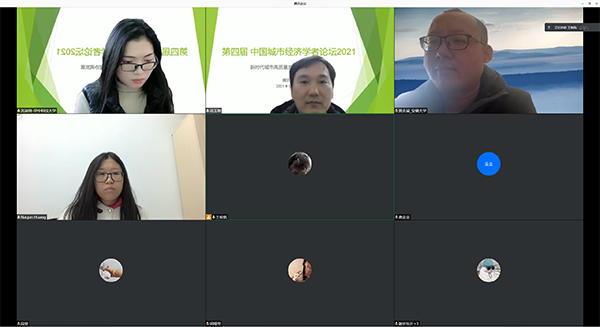 城市与竞争力研究中心主任倪鹏飞做了题为“聚中有散:中国空间经济格局变化的新动向”的报告。倪主任的研究认为聚散之力正在重塑中国区域经济新格局。他从区域及城市间关系的不同假说谈起,认为空间关系决定聚散之力,聚集与扩散各有利弊,“聚中有散”意义重大。聚散之力在中国呈现多尺度博弈:在区域尺度表现为南北纵向分化、东中横向一体;在城市尺度表现为一线城市升级、二线城市崛起;圈群尺度上表现为都市圈普遍出现、城市群渐次出现;城乡尺度表现为城乡差距缩小、巨型城市化地区出现。长江经济带在四个尺度的“聚中有散”博弈中加速崛起。 图 倪鹏飞演讲截图 分会场报告以演讲、点评的形式展开。八个分会场合计吸引了上千名学者线上参与和讨论。 分会场一的主题为“城市经济增长”, 130多人线上参会。上午会议由吴垠老师主持,他首先交流了中国城镇化的刘易斯转折的历史定位、实现形式和普遍意义。曹希广探讨了全球价值链参与对于中国本土产业空间集聚的影响。郑亮使用量化空间模型研究了城市多样性对人口迁移的影响,发现不同教育水平人群对城市宜居环境有不同偏好。陈刚验证了香港由于自身发展原因导致地区总体经济放缓,香港回归对香港地区的总体经济发展水平有促进作用。 刘涛雄教授主持了下午会议,他探讨了从平台视角看发展,提出一个解释区域经济发展的新框架。郑雨涵研究了新冠肺炎疫情下城市弹性测度及其影响因素。刘子亮从人力资本积累、企业全要素生产率与宏观经济效率视角研究了区域发展中的路径依赖效应。刘永健分析了城市建设用地价格扭曲与中国产业结构演进关系。王瀚佑探讨了互联网信贷、劳动生产率与企业转型应对。潘爽基于出口技术复杂度的考察研究了数字经济如何赋能外循环。 图 分会场“城市经济增长” 分会场二的主题为“城市群与集聚经济”, 150余人线上参会。上午的议程由刘修岩老师主持,共有五位老师做了演讲与讨论。陈露探讨了空间共聚、知识溢出与创新绩效的关系。牛昱佳报告了城市群碳排放的空间结构和影响因素,李斯嘉研究了城市群扩张与碳排放的关系。颜宇讨论了人口集聚的消费效应。王超群汇报了中国城市群区域经济差异与收敛性问题。 下午议程由徐瑛老师主持,共有四位老师参与报告与交流。徐瑛报告了城市经济密度与企业风险决策之间的关系。徐乐研究探讨了区域一体化的工业污染集聚效应。杜薇报告了数字化转型中的都市圈发展问题。洪真奕分析了城市规模、就业密度与空气污染之间的关系。在会议过程中,与会学者互相对彼此的论文进行了深入的讨论和精彩的点评,为研究进一步完善提供了丰富实用的建议。 图 分会场二“城市群与集聚经济” 分会场三以“房地产与土地市场研究”为主题,有100余人线上观看和讨论。上午场主持人为汤玉刚教授,汤玉刚、黄娜群、龚金金、黄永斌和沈淑琳老师分别就租税替代与商住用地价格差、疫情与城市住房市场、城市住房价格动态联系及其影响因素、基础教育集团化与学区房价格、本地住房市场情绪回报等议题进行了报告与讨论。 下午场主持人为谢丹夏教授,其与王霄、韩立彬、杨晓冬、张宝林、赵文哲和王一迪老师分别就房价、财富不平等与土地产权制度改革,财政收支平衡视角下的最优房产税,土地政策与空间错配,长租公寓租金空间分异,影子银行、住房泡沫与精准调控,开发区建设、土地出让与产业结构调整,“房价粘性”、不确定性与住房需求体系波动等议题进行了讨论。 图 分会场三“房地产与土地市场研究” 分会场四的主题为“城市政策分析”,100余人同时线上参会。肖忠意老师主持了上午会议,与陈海涛、张翼飞、赵魏一、邵磊以及万凯六位老师一起发表了报告,分别就国家级创新城市评选与企业创新意愿、自然灾害冲击与政府防灾减灾能力、公共卫生体系改革、地方财政冲击与土地供应,以及国家级开发区评选与城市绿色创新等议题进行了探讨分析。 孙晓华教授主持下午会议,并与任俊林、张译、赵英洪、张家才、周梦天、刘相锋共七位老师轮流做了汇报与点评,分别就资源税改革、新冠肺炎疫情扩散过程及影响因素、疫情期间实施封城政策对经济活动的影响、企业数字化与资本跨地区流动、区位导向性政策、限购政策效果与公众预期等议题进行了交流讨论。 图 分会场四“城市政策分析” 分会场五的主题为“城市环境治理”,十位研究者围绕该主题做了精彩报告,实时听众最高达146人。研究问题可分为四个方面:1.环境政策与绿色创新:鄢哲明研究发现“十一五”污染物总量减排政策有利于企业绿色技术创新。2.环境质量的影响因素:郭庆宾研究发现智慧城市显著提升城市能源效率;马青山研究发现国家生态工业园区创建显著改善城市空气质量;高自旺研究发现多中心城市结构有利于减少企业COD排放;周沂研究发现监测站有利于减少城市上下游污染企业COD排放的差异;宋佳航研究发现僵尸企业比例与当地企业污染情况负相关。3.环境政策与住房价格:张莉研究发现污染信息公开通过污名效应降低公众对住房的支付意愿;范珣发研究现长江沿岸一公里内化工企业“搬、改、关”政策显著提高沿岸两公里内的住房价值。4.绿色全要素生产率:尹向飞基于D