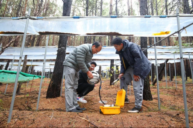 副教授郑成洋正指导学生们开展取土工作。这里是郑成洋课题组开展生态观测野外科研实验平台的“樟子松人工林降水控制实验样地”,目前全站已建有这样的生态观测野外科研实验平台四个,野外长期生态监测固定样地11个。