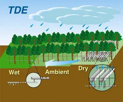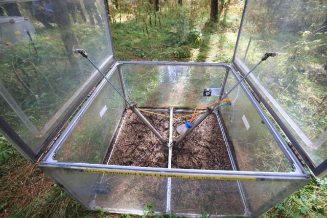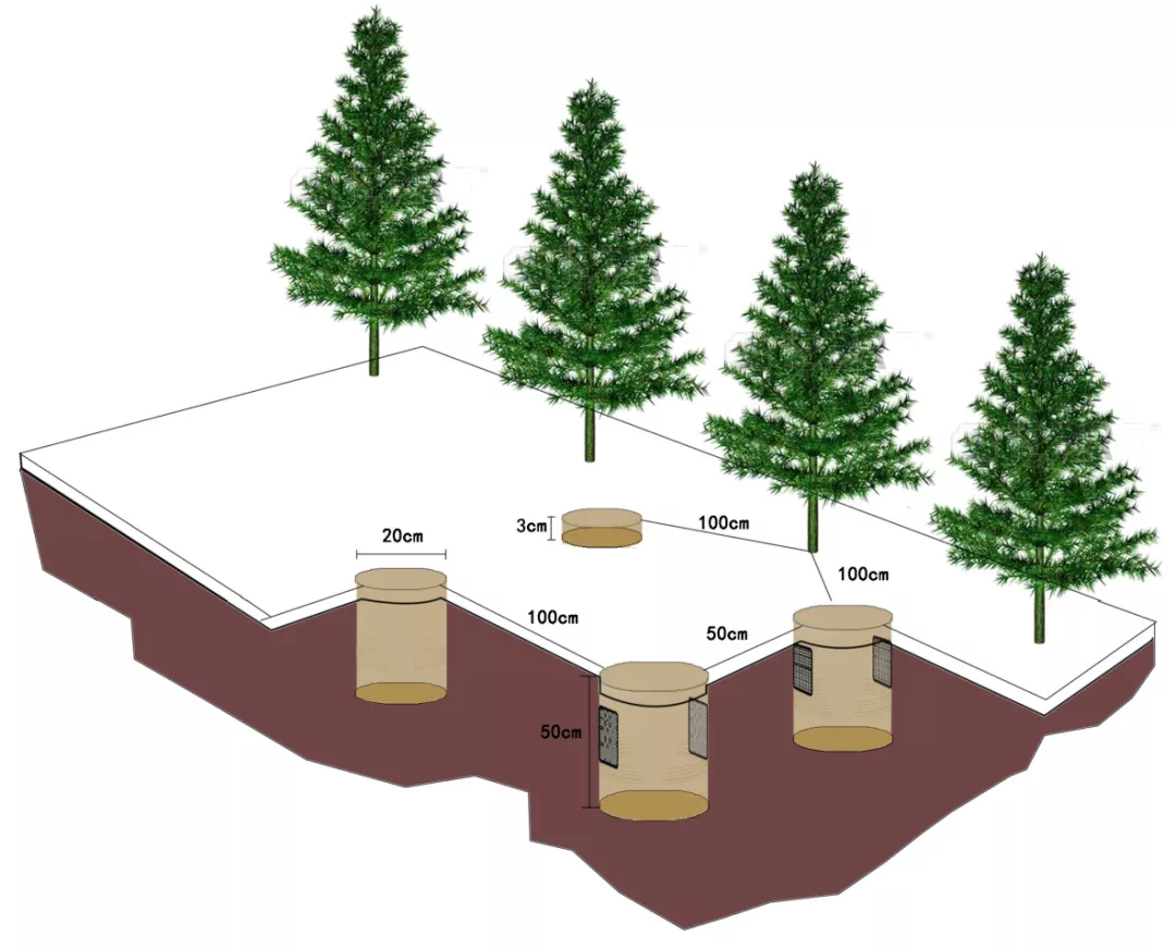 也与紧邻塞罕坝的御道口牧场建立了长期合作关系,于2020年9月开始进行草地生态系统碳水通量观测,同时也配备了一定的摄像物候观测。该样地的建成为林木交错带生态脆弱区对全球变化响应的研究提供了强力的技术支撑,补强了塞罕坝地区草地生态研究。 草地生态系统碳水通量观测仪器 经过三十余年的研究和十余年的监测,北大科研团队在塞罕坝孵化了系列科研成果: 刘鸿雁教授研究团队历经三十余年,系统开展塞罕坝及周边地区植被地理与植被生态研究,揭示了这一地区植被格局的成因,重建了这一地区过去植被演化过程,提出了区域林草植被覆盖的合适承载力。尤其是对多个造林树种固碳和耗水过程连续多年的观察,揭示了三北防护林地区主要造林树种小叶杨出现大面积死亡的原因,提出了未来区域植被恢复的策略。研究成果“中国北方生态脆弱区植被动态及其对气候变化的响应”获得2011年度教育部自然科学奖二等奖。参与完成的咨询报告“关于应对气候变化规避三北防护林衰退风险的建议”2020年得到了国家领导人的批示。 2 基于2010年建立的不同林龄落叶松人工林长期氮添加平台和2018年建立的季节不对称性增温平台,朴世龙教授团队对不同生长阶段落叶松人工林生态系统过程进行研究,旨在揭示落叶松人工林对未来气候变化情景的响应与适应。研究团队明确了氮沉降对落叶松人工林生长和土壤碳排放的影响模式,为建立高效、稳定、可持续的人工林提供了理论基础;揭示了落叶松人工林物候对季节不对称性增温的响应,为落叶松人工林建成和应对未来气候变化提供了重要的理论基础,有助于从物候学角度认识人工林生产力的维持机制。 基于2010年建设的樟子松人工林养分添加平台,王娓副教授团队对人工林生产力及土壤碳排放动态进行连续监测,改进了菌根真菌呼吸的测定方法,阐明人工林生长和土壤碳排放的响应模式,为人工林可持续管理提供参考。此外,基于不同退化草地氮添加实验平台(2011年起),开展较为系统的草地退化评估与恢复研究,建立草地退化评估指数,明确植物与土壤对人类干扰的响应,为退化草地的恢复治理提供借鉴。 4 郑成洋副教授团队选择塞罕坝45年樟子松人工林,通过穿透雨转移方法,增加、减少样方内+30%、-30%的水分,设立三个处理三个重复森林降水控制平台。研究樟子松人工林降水改变对水分利用效率、森林生长、土壤养分、植物生理等响应。 森林降水控制实验示意图 在未来,塞罕坝站将在现有监测和研究的基础上,以“林水关系”为主线,继续立足人工林生态系统的生态学基础、人工林对气候变化的响应与反馈、人工林生态效应的动态变化、不同造林模式的适应性四个研究方向开展长期定位监测和实验研究。 久久为功,薪火相传 塞罕坝站每年吸引全国多所高校的师生在此开展植物学、生态学、自然地理学、林学等学科的教学实习。 塞罕坝站目前是北大重要的生态学、自然地理学、环境科学的实习基地,也是杏吧原创