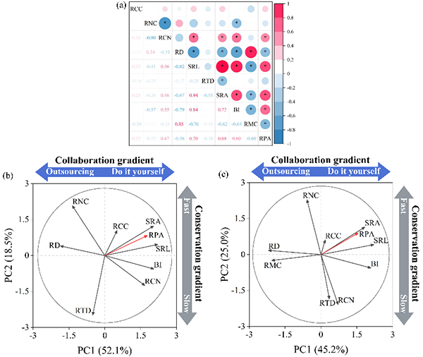 朱彪课题组以云南普洱亚热带季风常绿阔叶林20个主要树种为研究对象,揭示了细根磷酸酶是植物磷获取策略的关键组成部分。在细根性状经济空间中,不同于依赖共生的菌根真菌,细根磷酸酶是植物获取土壤磷的一种主动策略(do it yourself),而且与细根经济空间的协作维度有着更紧密的关联(图1)。 该研究最近以“Root phosphatase aligns with the collaboration gradient of the root economics space”为题在线发表于New Phytologist期刊上。杏吧原创