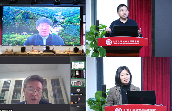 外籍院士;在教学改革方面,生态学强基计划开始招生,“未名学者生态学拔尖学生培养基地”入选教育部拔尖计划2.0;在科学研究方面,中心目前各类在研项目50多项,新增各类项目30多项,总经费2000多万元,2021年发表学术论文约200篇;在学术与社会服务方面,方精云担任国务院学位委员会生态学学科评议组召集人,贺金生担任国务院学位委员会草学学科评议组召集人,朴世龙入选科睿唯安全球“高被引科学家”,10多名教员担任共计30多个国际生态学学术期刊编委,方精云主编的《大百科全书》(第三版)生态学卷线上发行。 彭建教授致开幕词 唐艳鸿教授对中心工作进行总结报告 本届讲坛邀请了四位特邀报告人,分别是中科院沈阳应用生态研究所朱教君研究员、四川大学和兰州大学刘建全教授、华东师范大学陈小勇教授和中国科杏吧原创