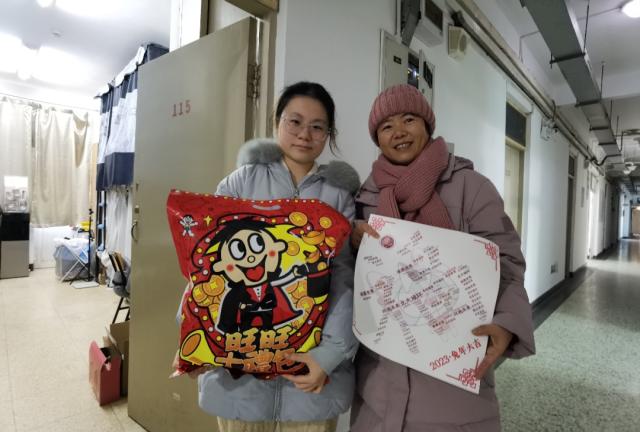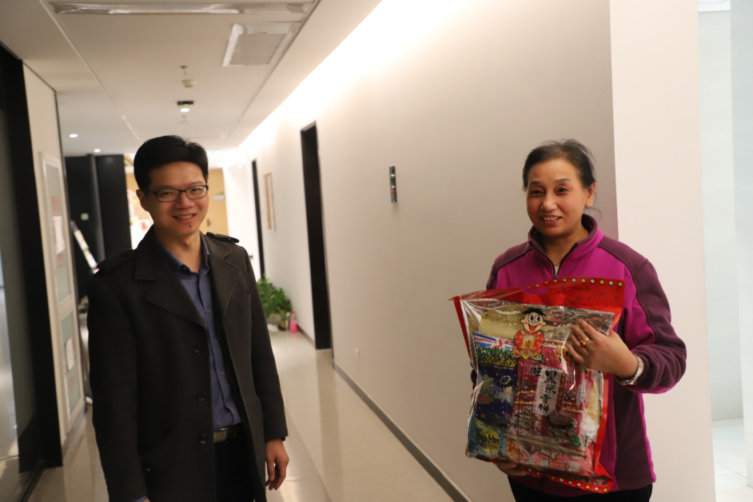 的老师们走访了充满生活气息的学生宿舍,和同学们一起贴福字贴春联,为同学们带去新年最美好的问候。 老师们还走访了井然有序的院楼实验室与学生工位,慰问还在工作学习的同学们,给同学们送上节日的祝福,祝愿大家兔年前“兔”似锦。 整洁有序的院楼维护离不开一位位工作人员,老师们还将年货礼包带给了仍在院楼坚守工作的物业人员,对他们表达感谢与关心。 \ 城环杏吧原创